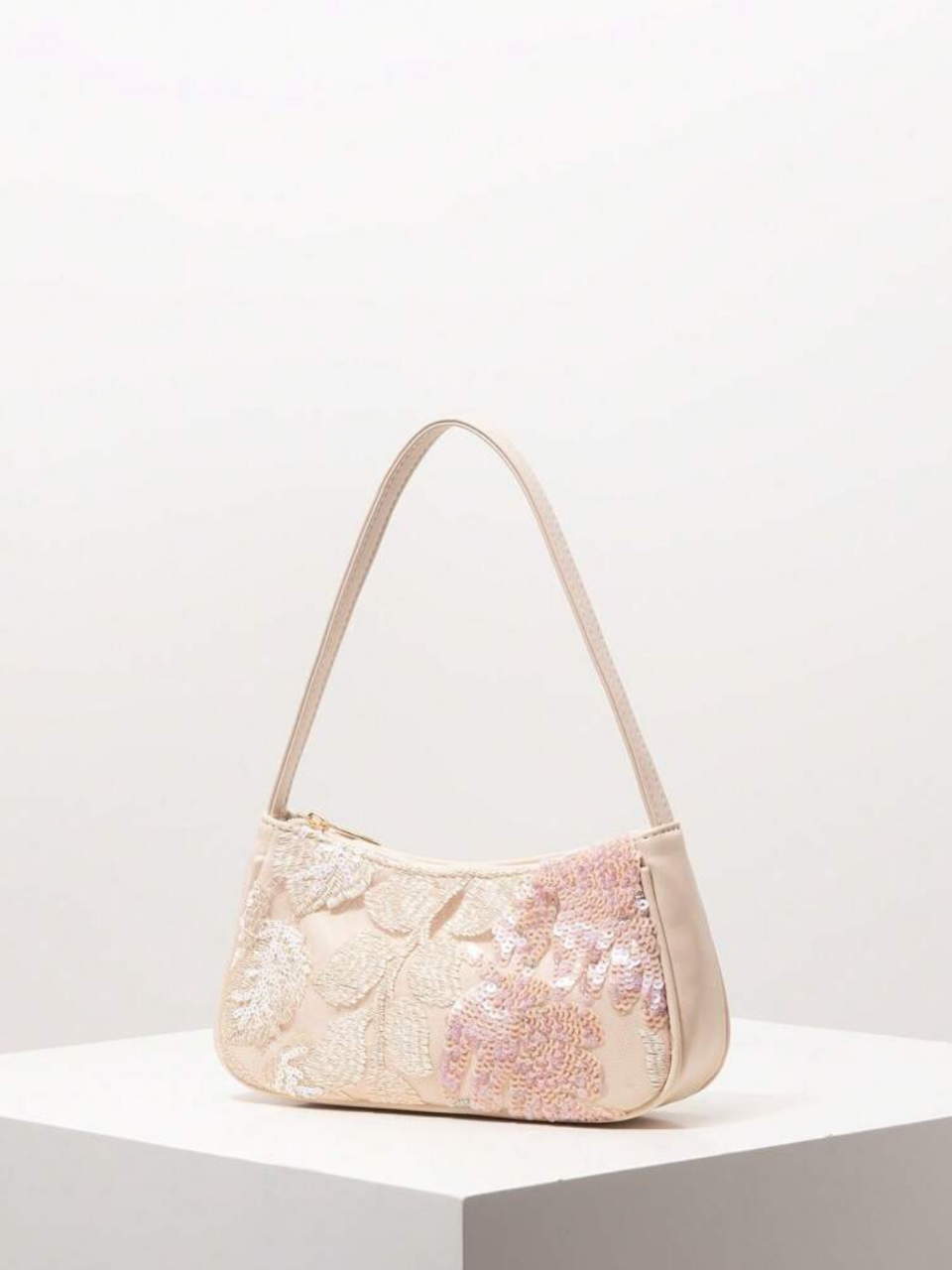 * 100% Polyurethane * Rhinestone Detail * Floral Pattern *Top Handle Strap * Zipper Closure * Baguette Bag * Medium Bag