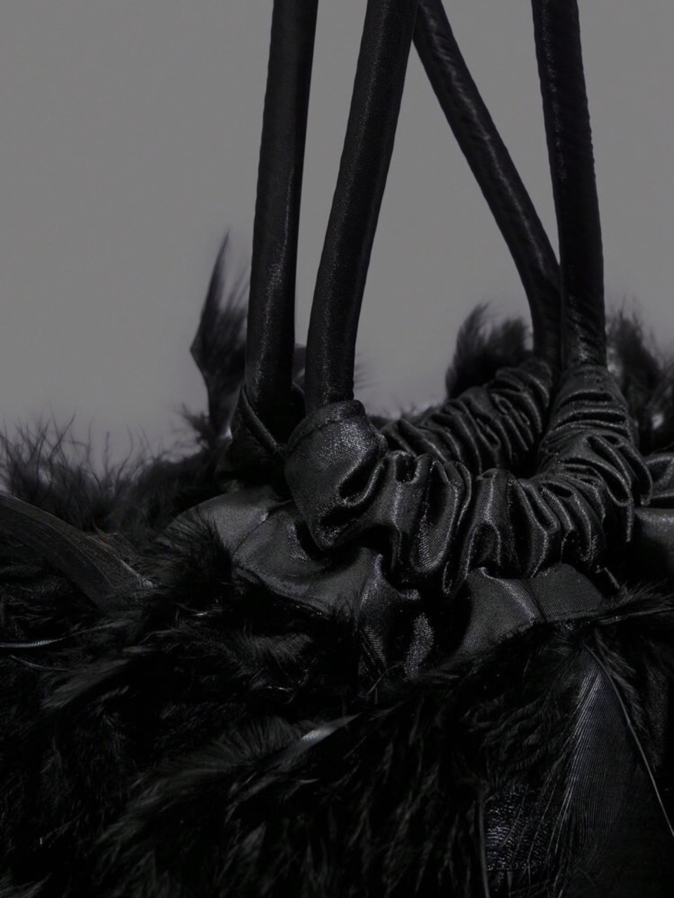 Strut your stuff with this adorable faux fur mini bag that's equal parts quirky and chic. Crafted from soft polyester with a luxe feather texture, this pint-sized novelty piece features sturdy double handles perfect for carrying your essentials in style. The sleek black finish pairs effortlessly with any outfit, while its compact size makes it ideal for nights out or festival adventures. A playful accessory that proves bigger isn't always better.